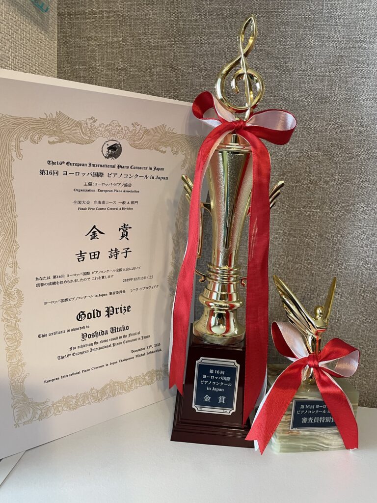 ヨーロッパ国際ピアノコンクールにて金賞をいただきました。